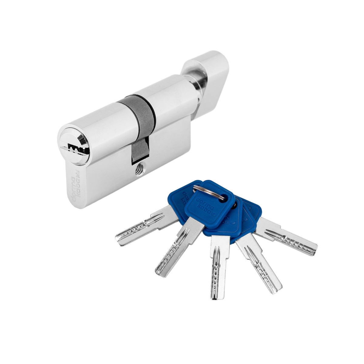 Для изготовления цилиндров используются высококачественные материалы, что гарантирует их долговечность и стабильную работу. Корпус, инсерт, пины, вертушок и ключи выполнены из латуни. В комплекте идут реверсивные перфоключи с пластиковой шляпкой и шейкой ключа 14 мм. Толщина ключей составляет 2,4 мм, всего их пять штук.