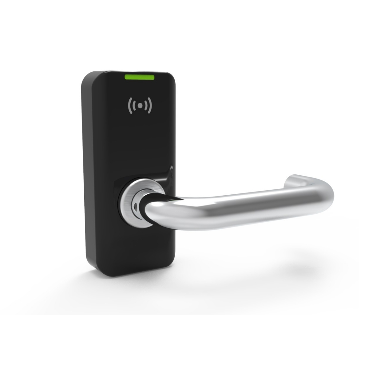 Электронная дверная ручка в компактном корпусе, удобном для установки на профильные и цельностеклянные двери