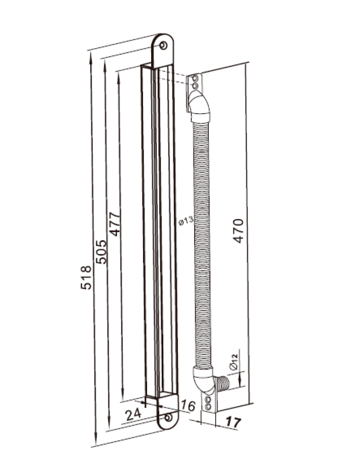 | KÜ 518 | до Ø 7,5 мм | до 180° | 518 x 24 x 13 мм |