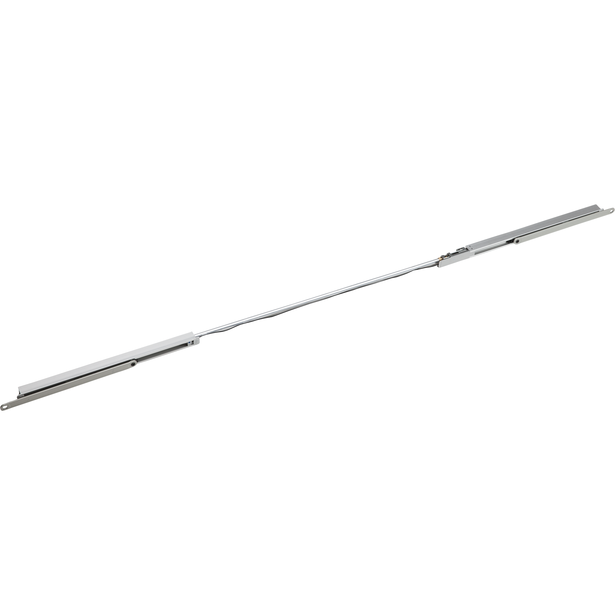 Координатор последовательности закрывания створок со скользящим каналом G 96 GSR состоит из скользящих каналов для активной и пассивной створок с ограничителем угла открывания, соединительной трубы, корпуса направляющей скользящей штанги со стопорной шайбой и пружиной скользящего канала и двух рычагов.
