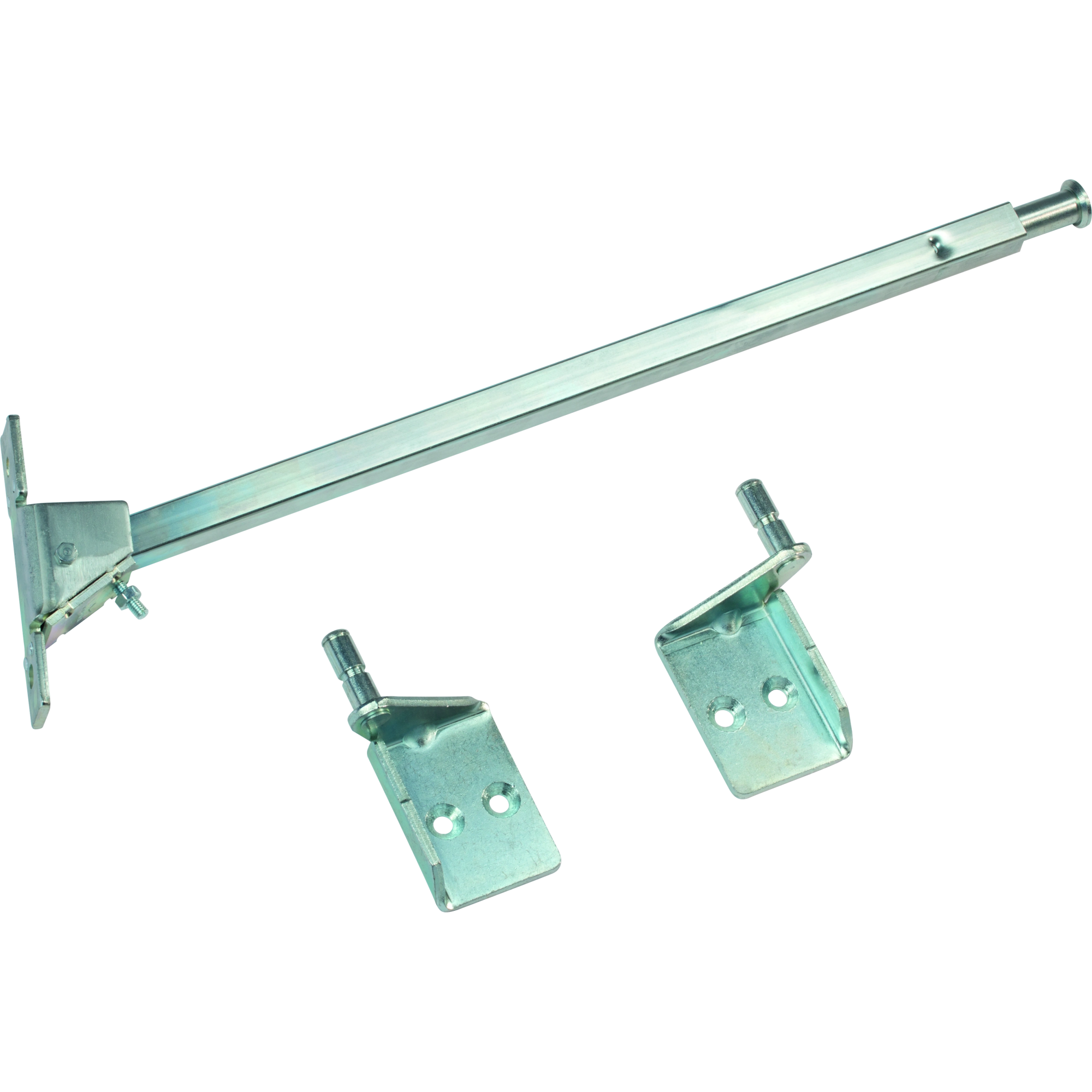 Дверной координатор универсального типа для установки на дверную раму, оснащен встроенным телескопическим демпфером и регулировочными винтами для точного позиционирования в смонтированном состоянии.