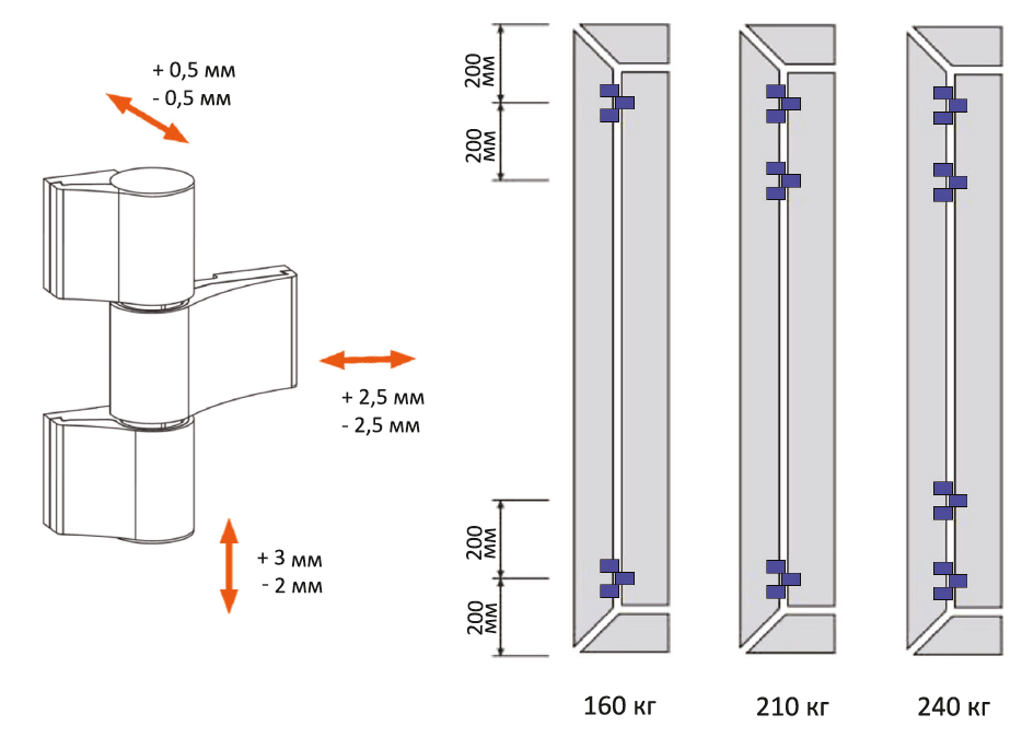 Регулировка: в 6 направлениях (горизонталь, вертикаль, прижим створки)