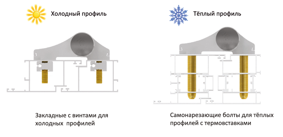 Для холодного профиля: 6 винтов М8×38 мм + 3 закладные