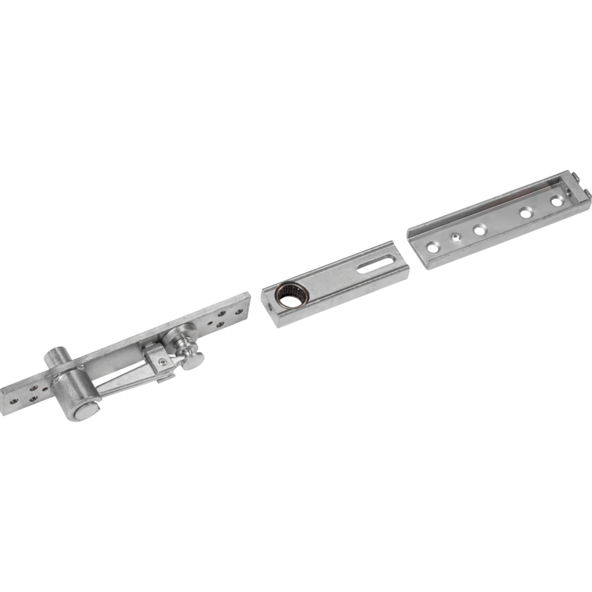 Регулируемая шарнирная петля для маятниковых дверей (литая) состоит из верхней части с регулируемым стержнем и нижней части