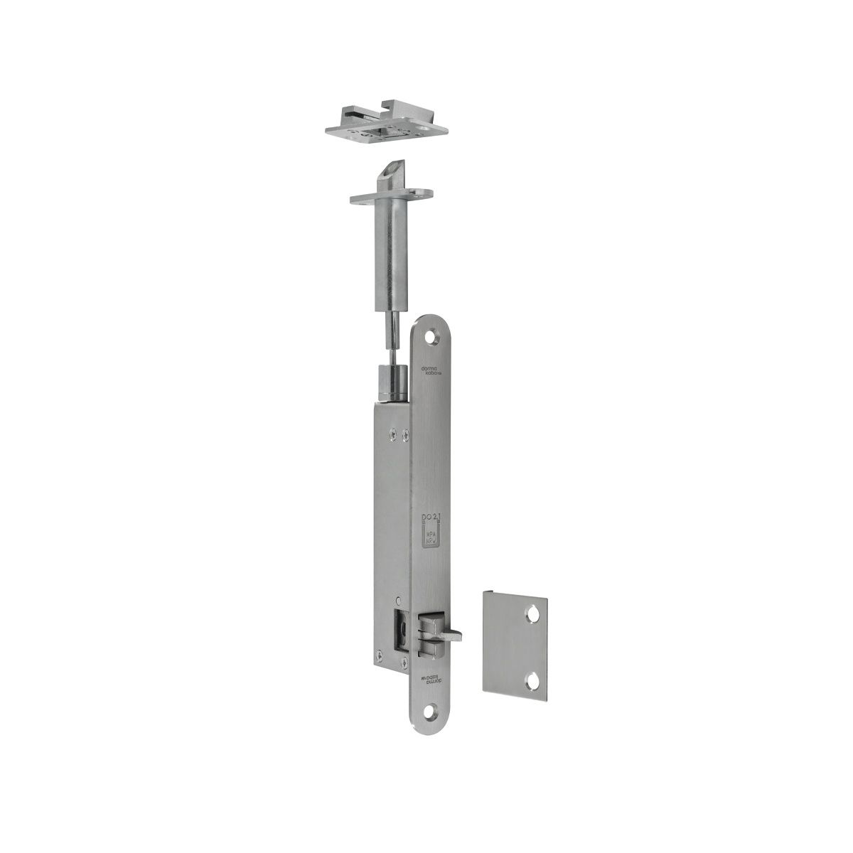 Автоматический шпингалет dormakaba для пассивных створок подходит для применения на профильных, стальных и деревянных дверях.