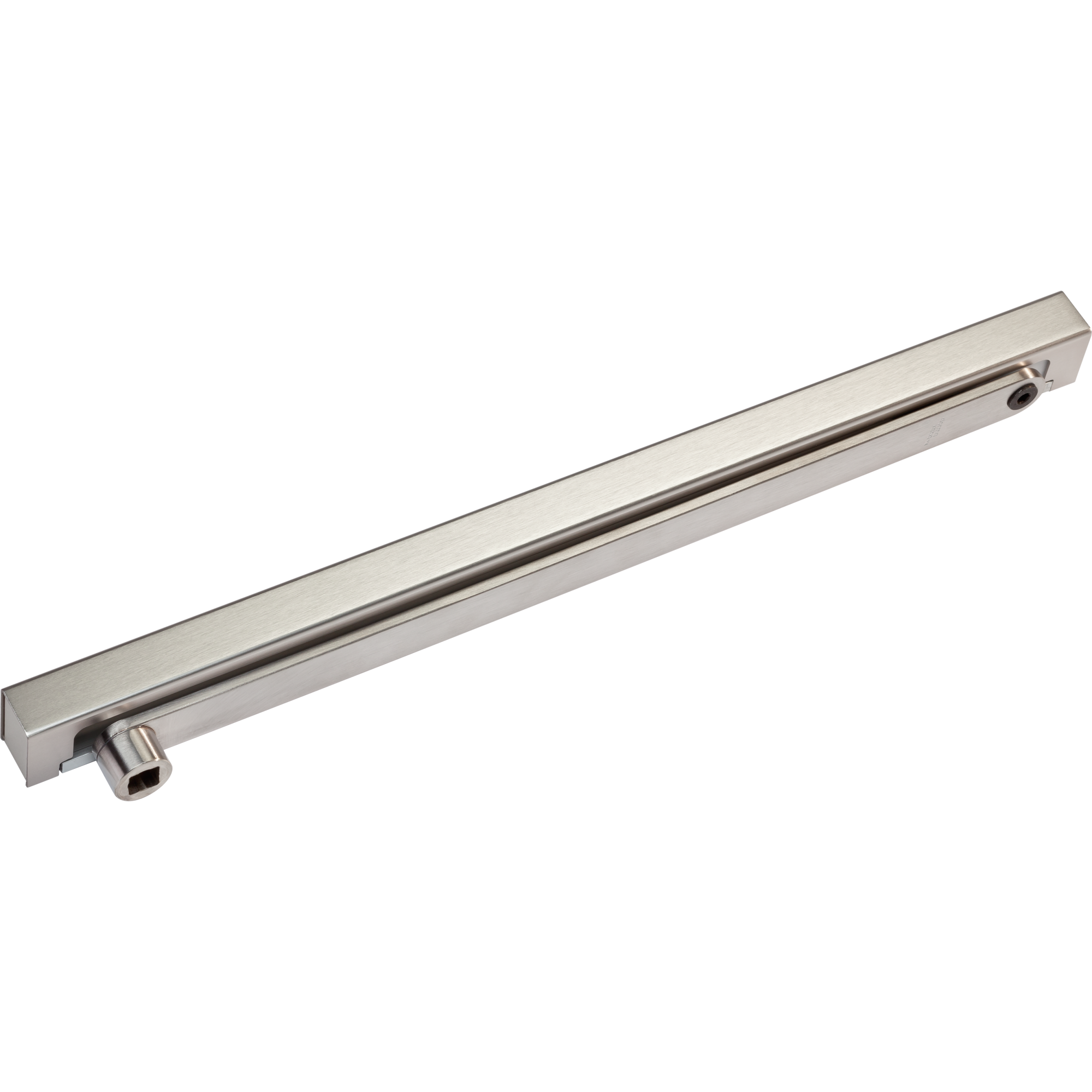 Благодаря продолговатым отверстиям для крепления скользящего канала к поверхности и параллельная установка канала и тела доводчика получится идеально даже тогда, когда будут отклонения при рассверловке.
