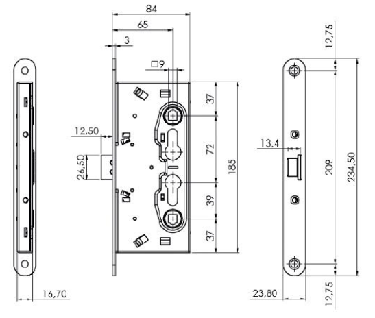 Замок антипаниковый онестойкий 2505VB 72/65/9 F=23,8 для активной створки в комплекте с крепежом
